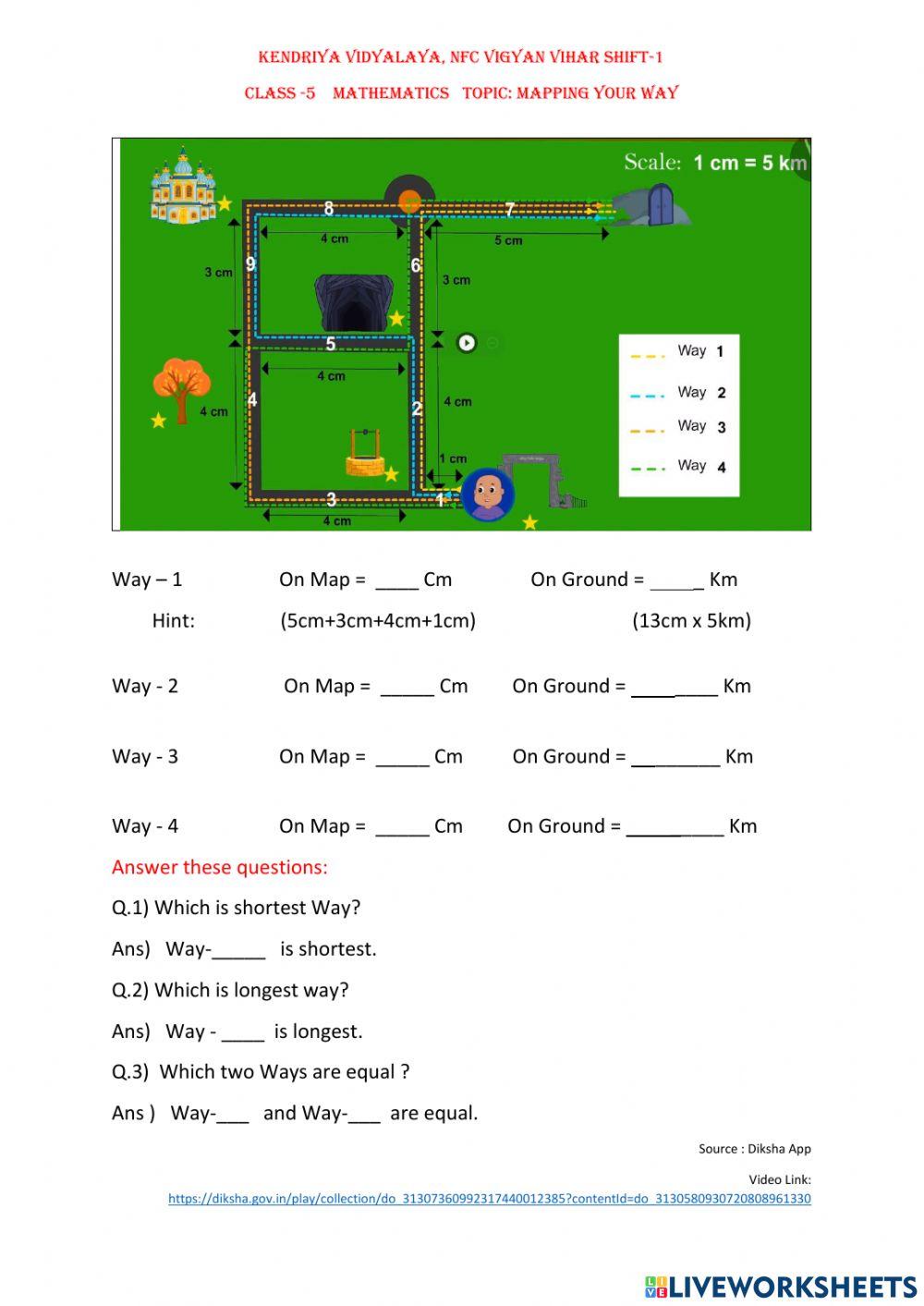 WORKSHEET / Mapping Your Way / Class 5 Maths NCERT Chapter 8 Extra