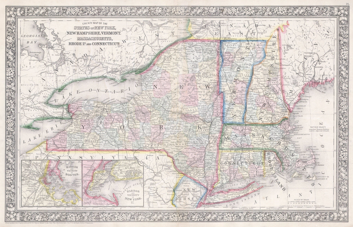 Mitchell Map of New York, Massachusetts, Connecticut, Rhode